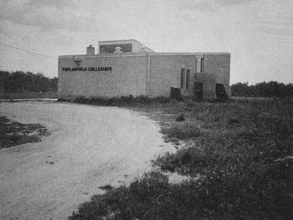 In the late 1950s and early 1960s, Dehowa Collegiate classes had been held in the community hall and Catholic parish hall. In 1962, a high school designed by the Winnipeg architectural firm of Libling Michener was built on the north side of the third Dehowa building. Known then as Poplarfield Collegiate, it was closed in June 1967 and the building was used for elementary classes. The Poplarfield Elementary School was closed in June 1991 and the building was standing vacant at the time of a 2020 site visit.