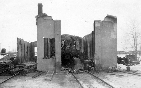 Steam Locomotive No. 3 after a fire at Pointe du Bois (December 1943)