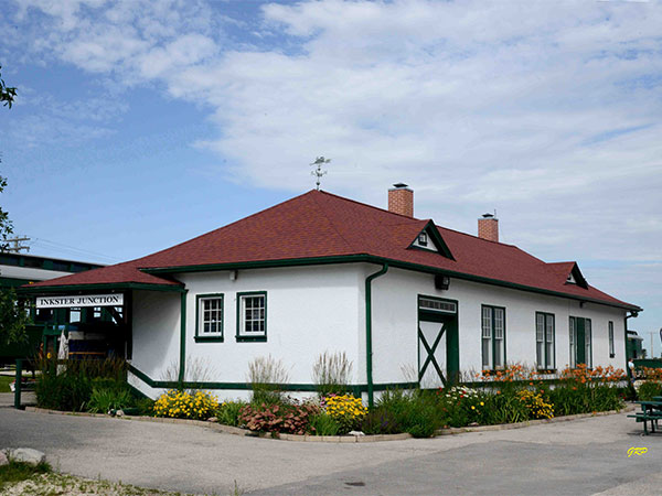 A station building, a special design built in 1910 by the Canadian Northern Railway on Estella Street near Portage Avenue at St. James, was moved to this site in 1999.