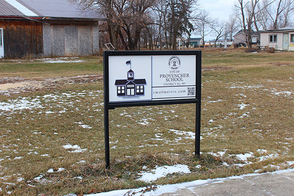 The Provencher School District was established formally in December 1898 and a school operated in Aubigny in the Rural Municipality of Morris. The initial building was later converted into a private residence and a two-classroom structure was built on the east side of St. Mary’s Road. In 1932, instruction was assumed by three nuns from the Sisters of the Cross Order: Sister Adile, Sister Marie St. Aubin, and Sister Berthe St. Jean, who established a convent in the former church rectory. In 1939, a larger school building was erected on the west side of St. Mary’s, next to the convent. The nuns left Aubigny in 1968 and the school closed in June of that year. In September 2015, a sign commemorating the school was erected at the site.