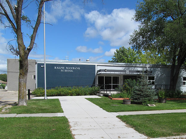 This Fort Garry school within the Grandin School District No. 1024, designed by the architectural firm of Libling Michener and named for lawyer, legislator, and Justice Ralph Maybank, was opened on 4 February 1957, with architect Gerald A. Libling presenting keys for the building to Grandin School Board Chair John Dallyn. Also present were Chief Inspector Robert William Lightly and Fort Garry Mayor Raymond Darwin Chase.