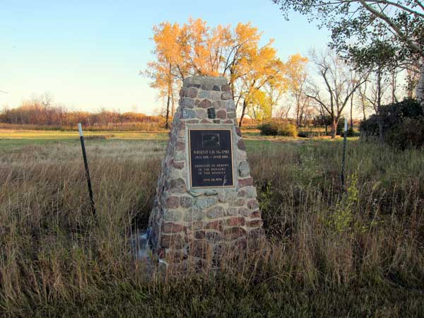 On 28 June 1970, a commemorative monument was unveiled near the site of the former school, in front of the local church. Around 1978, the schoolhouse was moved to Riverside Hill near highway #10. Around 1993, it was moved to a site overlooking the Souris River (about N49.52915, W99.81275) where it was used for a time as a hunting shack.