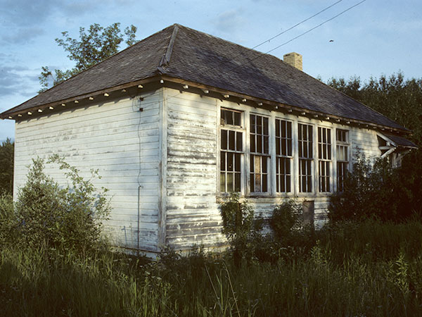 The Rhodes School District was organized formally in March 1908, named for local settler Edward Rhodes, and a school building was erected in 1914 on the northeast quarter of 18-29-22 west of the Principal Meridian in what is now the Municipality of Ethelbert. When that original school building was destroyed by fire on 13 April 1933, its replacement was erected on NW8-29-22W, south of Rhodes Church.