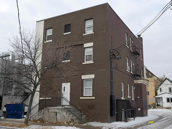This three-storey brick block on Young Street in Winnipeg, measuring 30 feet by 47 feet, was designed by local architect Charles Saunders Bridgman and constructed in 1906 by owner Christopher Metcalfe at a cost of about $12,000. The building contained 14 apartments in its original configuration.