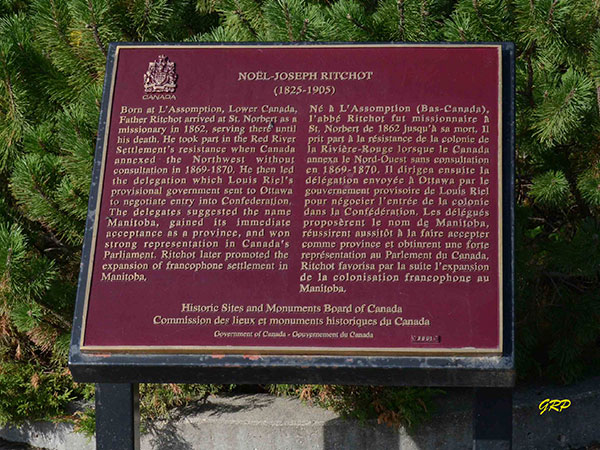 “Father Noel-Joseph Ritchot commemorated,” Parks Canada news release, 2 October 1995.