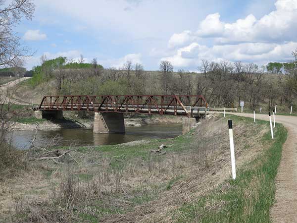 Steel pony truss bridge #1321 over the Souris River (May 2015)