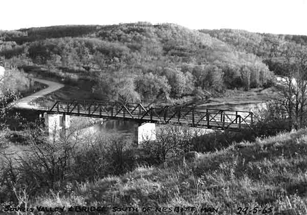 Steel pony truss bridge #1321 over the Souris River (May 1965)