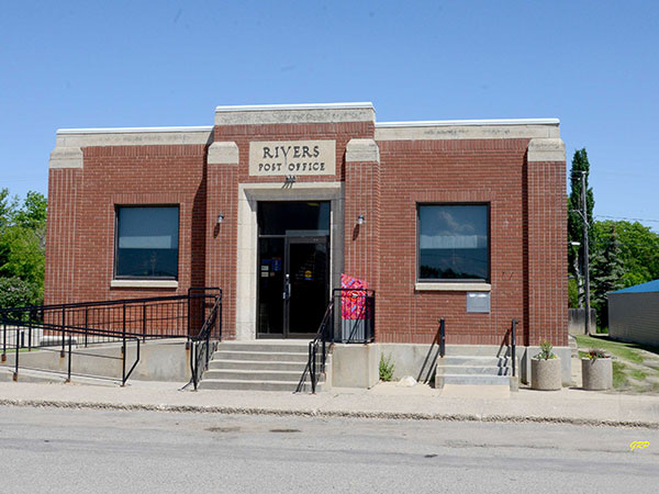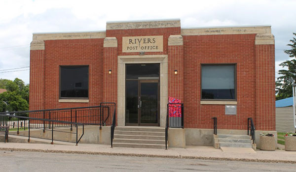 This one-storey brick building at the northeast corner of Second Avenue and Columbia Street in Rivers, measuring 35 feet by 40 feet, was designed by Thomas William Fuller (1865-1951), Chief Architect for the Department of Public Works at Ottawa, as a post office. It was built between 1935 and 1936 by Brandon contractor Alfred Edward White at a cost of about $12,000.