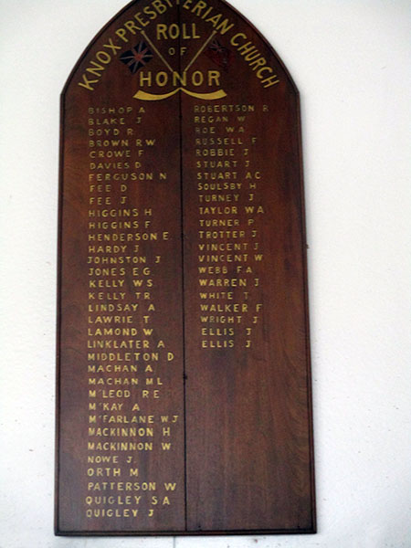 War memorial plaque for Knox Presbyterian Church (January 2020)