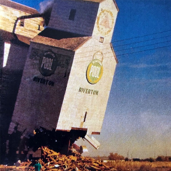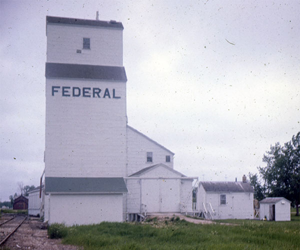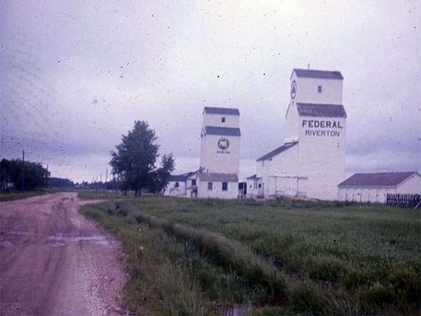 A wooden grain elevator at Riverton, on the CPR Winnipeg Beach Subdivision in what is now the Municipality of Bifrost-Riverton, was built in 1937 by Searle Grain, which merged to form Federal Grain in 1966. Sold to Manitoba Pool in 1971, it was moved beside Pool’s elevator and converted into an annex.
