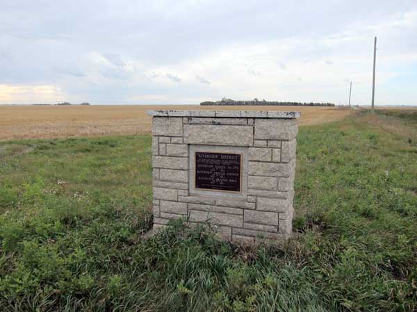 A monument in the Municipality of Souris-Glenwood, erected in 1987, commemorates Riverview School No. 279, which operated between 1884 and June 1948 at NE28-7-20W, Riverview United Church, which operated between 1902 and 1952 at SW34-7-20W, and Riverview Orange Hall, which operated between 1933 and 1973 at NW27-7-20W. Across the road from the monument are the remains of the shelterbelt for the former school yard.