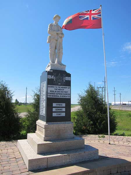 A monument at Roblin, in the Municipality of Roblin, was unveiled on 11 November 1927 to commemorate people from the local area killed during military service.