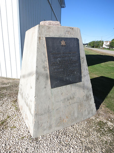 A monument beside the Curling and Skating Rink in Roland, in the Rural Municipality of Roland, was erected in 1967 in commemoration of the centenary of Canadian Confederation.
