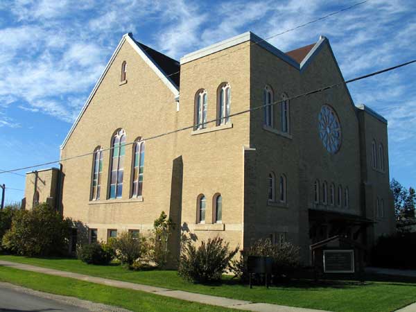 The present church was designed by Winnipeg architect James Chisholm and the church was built between 1912 and 1913 by contractor Frederick “Fred” Hinds at a cost of about $30,000. The cornerstone for Zion Methodist Church was laid by the minister’s wife, Mrs. J. E. Lane, on Easter Sunday in 1913.