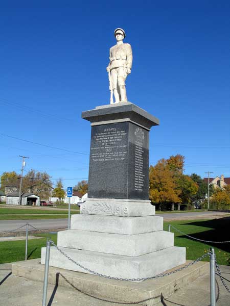 A monument in Roland, in the Rural Municipality of Roland, was erected in 1922 to commemorate those from the local area killed in the First World War. Those killed during the Second World War were added later. It stands on the grounds of the municipal office constructed in 1951.
