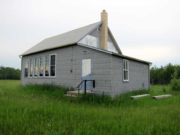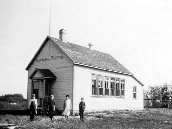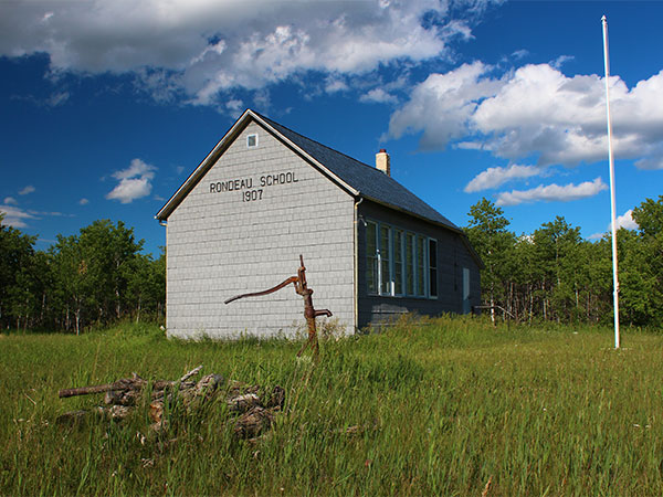 Rondeau School District was formally established in February 1903. A sign on the school building here indicates that it was built in 1907, on a three acre site at the southwest corner of SW33-18-2 west of the Principal Meridian, in the Rural Municipality of Armstrong. The district was dissolved in May 1936 as its area became part of the Armstrong Municipal School District No. 1842. The school continue in operation until the summer of 1967. The building is used occasionally as a community centre, and some original school desks remain inside. Attendance and other records of Rondeau School are held at the Chatfield Museum.