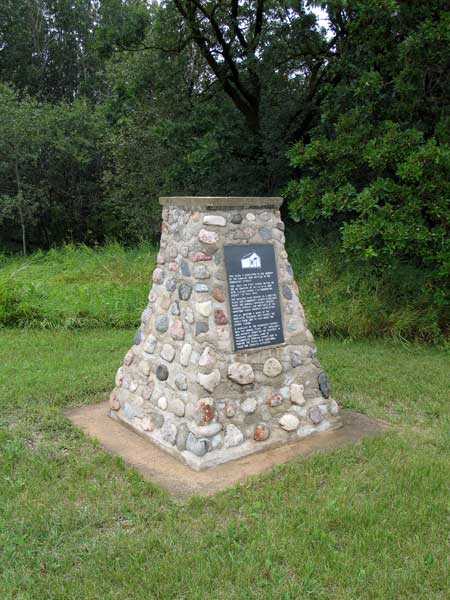 A monument, erected in July 1997, was built by Dwight S. C. Johnson and Keith Williamson, both former students of Rookhurst School. Johnson is reported to have pressed a 1941 penny into the wet concrete in commemoration of the year in which the original school burned down. The cairn was paid for by former students and its brass plaque was sponsored by Lem Shuttleworth. It is not situated at the site of the former school, which is now used as a residence on nearby NE36-13-18 west of the Principal Meridian (approximately 50.15182, W99.79822).