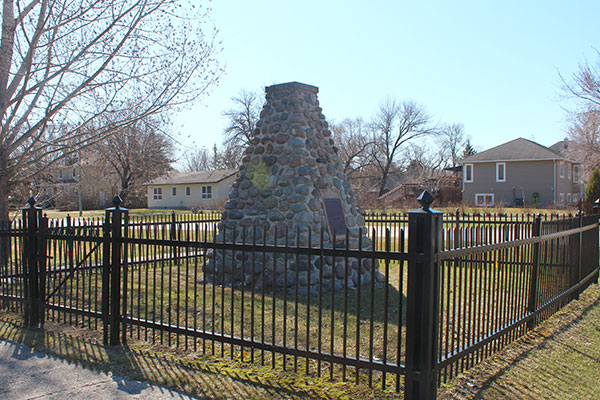 This monument in Letellier, in the Rural Municipality of Montcalm, commemorates the Roseau Route. The war road of the Sioux leading to the Lake of the Woods, it was the earliest route to the west, first used in 1733 by the French explorer La Jemmeraye in 1736. He was buried near the mouth of the Roseau River. The plaque was unveiled in 1936 by the Historic Sites and Monuments Board of Canada.