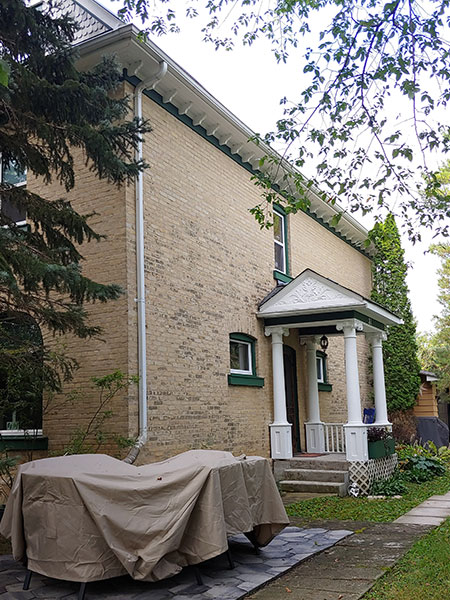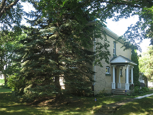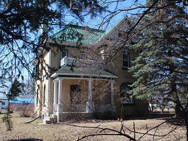 This two-storey, brick house in Gladstone, in the Municipality of WestLake-Gladstone, was built in 1904 for real estate agent T. E. Nichols. He went bankrupt before the house was completed so the work was done by physician Edwin William Rose.