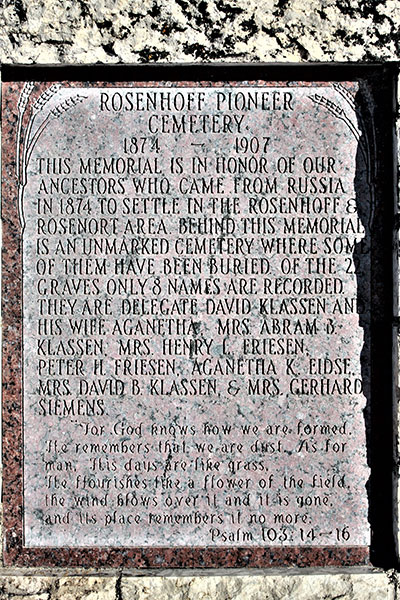 Historic Sites of Manitoba: Rosenhoff Evangelical Mennonite Cemetery (RM of Morris)
