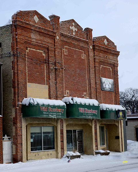 This two-storey, red brick building on Sargent Avenue in Winnipeg was designed by local architect Max Zev Blankstein. Excavation of the site was contracted to James Murray Reid and the building itself, measuring 50 feet by 102 feet, was constructed in 1926 by W. A. Irish and Company at a cost of about $60,000. The structure had two retail spaces on each side of a central entranceway to a theatre that had capacity for about 850 people.