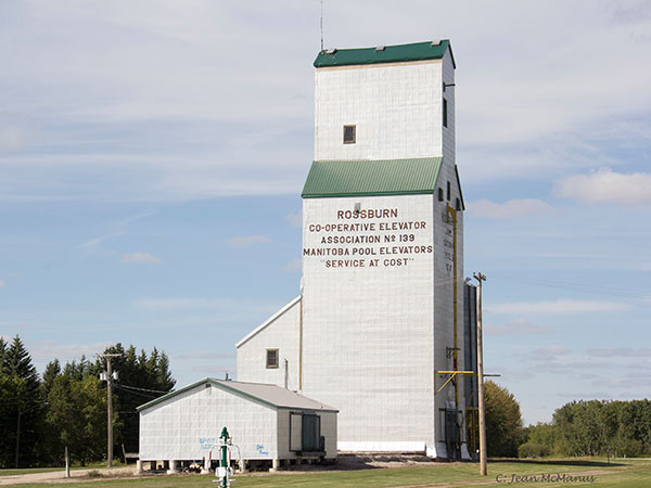 A wooden grain elevator at Rossburn, on the CNR Rossburn Subdivision in the Municipality of Rossburn, was built in mid-1963 to replace an elevator destroyed by fire in March 1963 which in turn replaced an elevator destroyed by fire in December 1952. Three steel bins beside it were added in the 1960s although the one nearest the elevator burst open in November 1967, spilling grain on the ground and railway track. The two larger steel bins on the other side were newer, added in 1987 when the elevator underwent a full renovation. The facility closed in 1996 when the railway line was closed but it remained in use for private grain storage at the time of a 2017 site visit, although the older three bins had been removed.