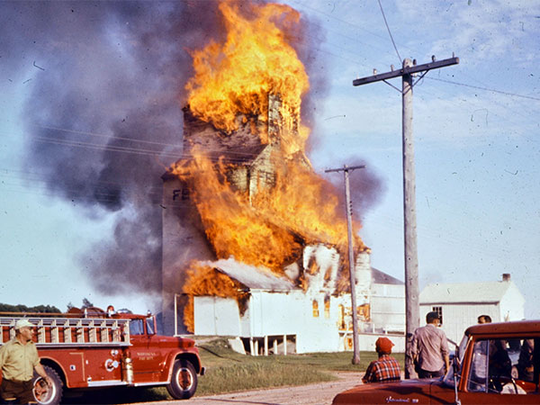 Federal Grain elevator at Rounthwaite on fire (July 1972)