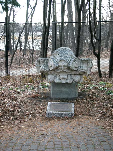 Located in the English Garden in Assiniboine Park, this large carved stone piece once graced the Canadian Pacific Railway’s luxurious Royal Alexandra Hotel, operating at the corner of Higgins Avenue and Main Street from 1906 to 1971. This shard was placed in the Garden in 1990.