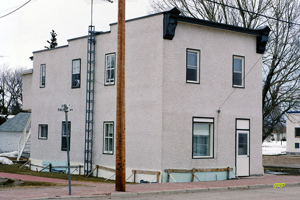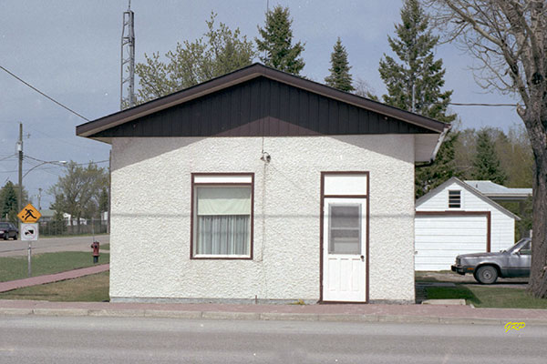 This one-storey building at the intersection of Hospital Street and Railway Avenue in Whitemouth, in the Rural Municipality of Whitemouth, was previously a branch of the Royal Bank of Canada. When the bank moved to new premises in the late 1960s, the building was converted to residential use. In 1997, the second storey was removed.