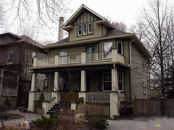 This two-storey wood frame house on Ragland Road in Winnipeg was built in 1912. Its first owner, Luther J. Rumford, operated a laundry and dry cleaning business. The house is listed on the Wolseley Walking Tour.
