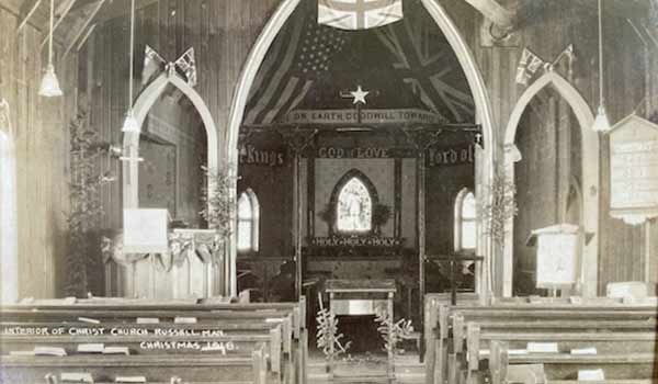 Interior of the original Christ Church Anglican at Russell (December 1918)