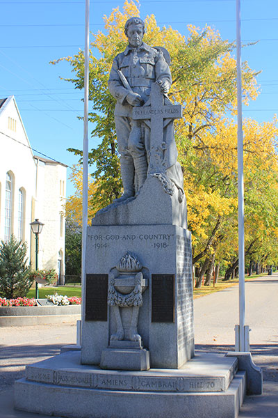 A monument in Russell, in the Municipality of Russell-Binscarth, was manufactured by the Thomson Monument Company of Toronto and unveiled at a ceremony on 22 June 1922 attended by Lieutenant Governor James Albert Manning Aikins, Committee Chairman Albert Gale Parker Smellie, Mayor Peter J. McIntosh of Binscarth, Russell School Principal Albert Maurice Pratt, Major Darcy Everard Boulton, and Rev. Mr. Secker of Selkirk.