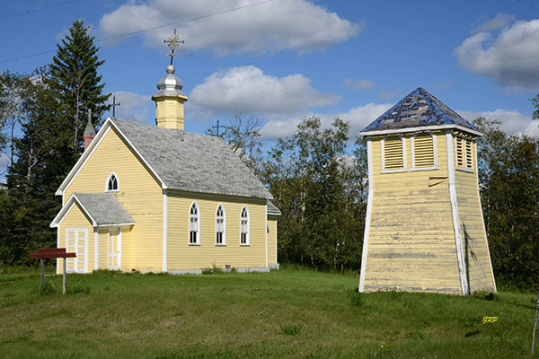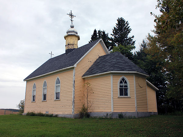 This small Ukrainian Catholic church at Ruthenia in the Municipality of Rossburn was constructed in 1911. An associated cemetery is situated a few hundred meters to the east.