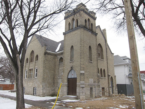 This two-storey brick and Tyndall stone church at the northeast corner of Burrows Avenue and Andrews Street in Winnipeg, measuring 30 feet by 60 feet, designed by local architect George Gaspar Teeter. It was constructed in 1907 by the construction firm of Fraser and MacDonald at a cost of about $11,000 for the congregation of Salem Reformed Church. With a seating capacity for about 350 people, the church was dedicated officially on 20 November 1907.