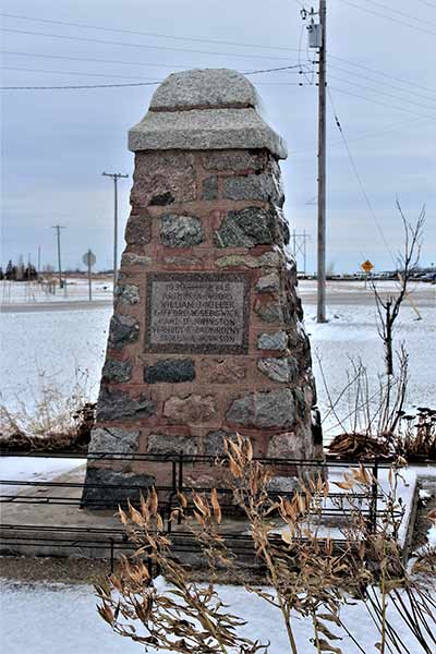 A stone monument at Sanford, in the Rural Municipality of Macdonald, commemorates soldiers from the local area killed during military service during the First World War and Second World War.