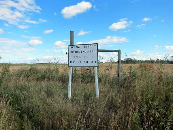 Established formally in 1884, the Scotia School District operated a school at this site in what is now the Municipality of Hamiota from 1895 to August 1918. At that time, it closed as part of school consolidation in the early 20th century, joining Eden School No. 510 to form Oakner Consolidated School No. 290 in the nearby village of Oakner.