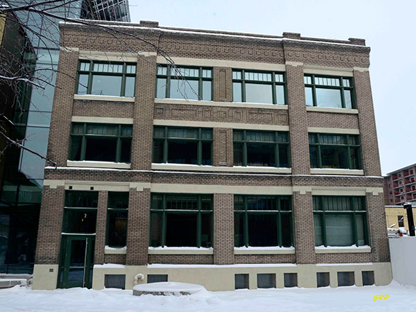 In the mid-1920s, the fruit company moved to premises on Ross Avenue and its place in the building was taken by Mid West Paper Sales Limited, which remained there until the 1950s. Subsequent occupants included clothing manufacturers, a food broker, a printer, and a children’s theatre. A one-storey annex to the main structure, added in 1945, was occupied in 1975 by Metro Motors.