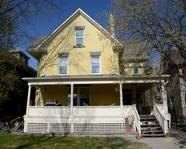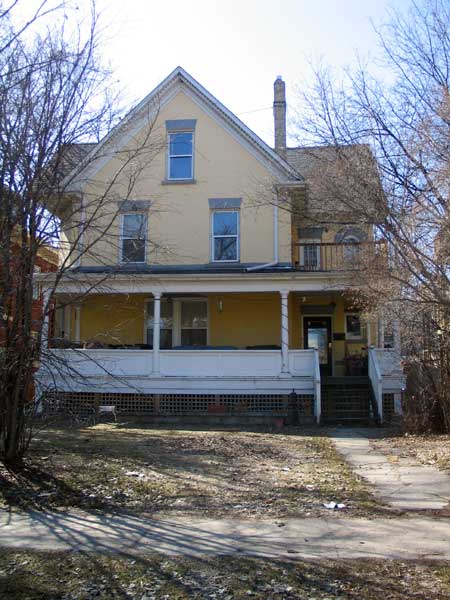 This two-storey brick building on Balmoral Street in Winnipeg was constructed in 1906 by the contruction firm of Ross Brothers at a cost of about $6,500. Its first occupant was businessman Henry Edward Sharpe. Subsequent owners included Angus D. Robertson of the Robertson-Adams Lumber Company (to the late 1910s), Dr. H. J. Meikley (to 1922), and Dr. William Leggette (to 1938). Its address was originally 26 Balmoral Place but the street’s name changed in the late 1950s.