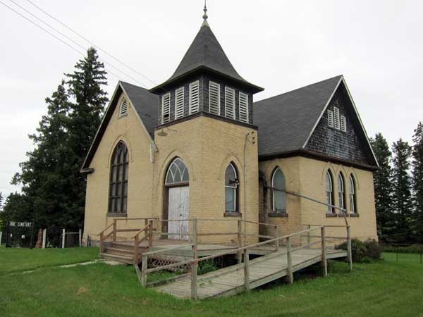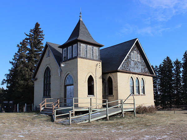 This church and its associated cemetery were situated in the Rural Municipality of Wallace-Woodworth. The building, constructed of amber-coloured bricks in 1903, replaced an earlier log structure from 1883 that had been destroyed by fire. Built primarily with volunteer labour, it began as a Methodist Church (1883-1923), then became Presbyterian (1923-1925), and after 1925 was a United Church. In the early 1980s, the church was featured in a series in the Manitoba Co-operator newspaper on rural architecture.