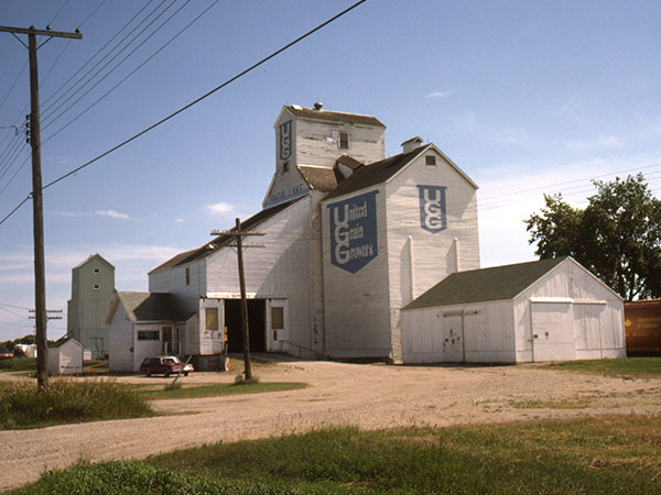A wooden grain elevator at Shoal Lake, on the CPR Bredenbury Subdivision in the Rural Municipality of Yellowhead, was formerly operated by United Grain Growers. It is now used for private grain storage.