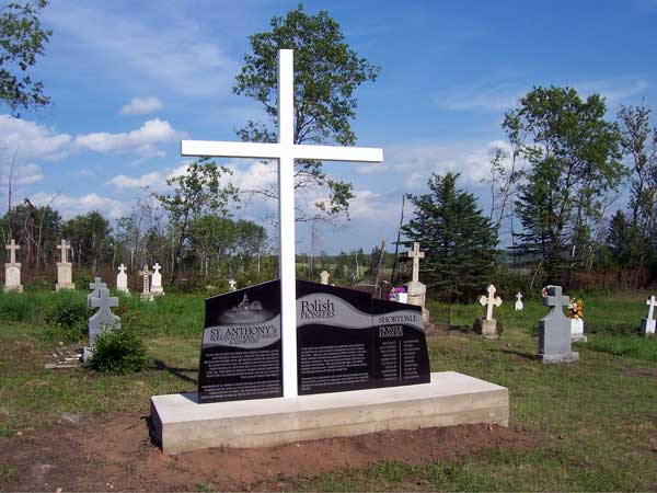 A monument in this cemetery in the Municipality of Roblin, near the former community of Shortdale, was erected in 2007 to commemorate St. Anthony’s Roman Catholic Church and pioneers of this area. Their surnames are listed on a plaque on the monument.