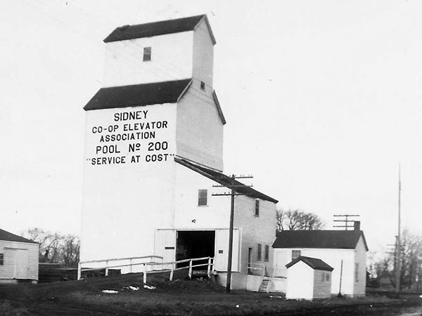 The last grain elevator in Sidney was built by Reliance Grain in 1942. Having a capacity of 36,700 bushels, it was sold to Manitoba Pool in 1948. Traded to Cargill Grain in 1975, substantial renovations were made at that time. Closed in 1993, the building was demolished in 1999.