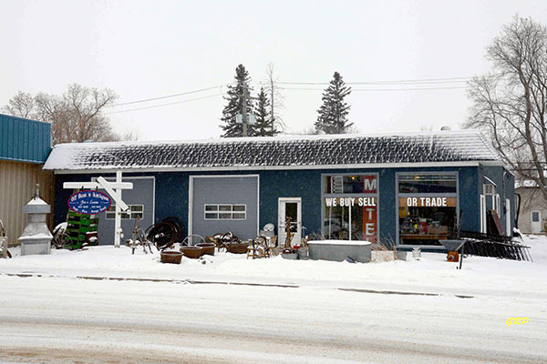 This one-storey building in Carberry was constructed in 1949 as a service station for proprietor Alfred B. “Alf” Lounsbury. He operated the business for 33 years until selling it to Sid Parker. Now a municipally-designated heritage site (2007), it houses an antiques store.