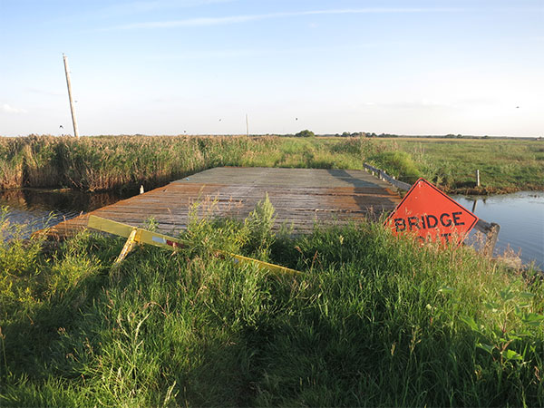 An abandoned timber beam bridge over the Pipestone Creek in the Rural Municipality of Sifton is believed to have been constructed in the early 20th century.