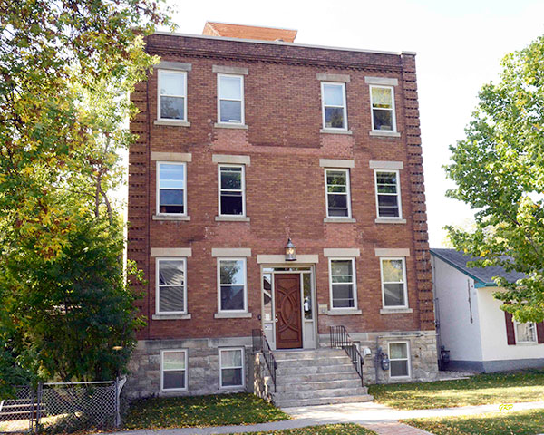 This three-storey brick and stone building on Simcoe Street in Winnipeg was designed by local architect William Bruce and built in 1912 by the Benjaminson Construction Company and T. Johnson at a cost of about $25,000. The 33 feet by 60 feet building contained six apartments in its original configuration; it later contained seven apartments. Around 1919, it was renamed Laclede Apartments. After being vacant from 2009 to 2012, a new owner carried out extensive renovations and reopened it as an apartment block.