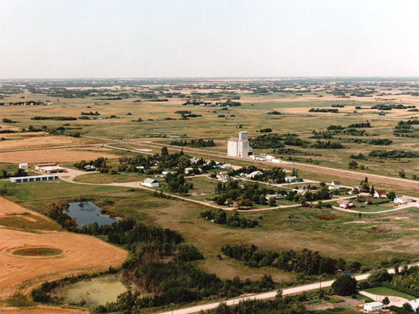 Aerial view of the Manitoba Pool grain elevator at Sinclair (1990s)