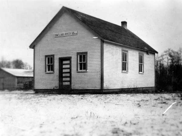 The Sinclair River School District was organized formally in June 1917. From 1919 to 1953, it operated a one-room wood frame school building on the southwest quarter of 21-37-25 west of the Principal Meridian in what is now the Municipality of Minitonas-Bowsman. In 1953, the building was moved to a site one mile north and a half mile east of this location, on the southeast corner of 28-27-25W. A monument at this site, erected in 1996, commemorates it.