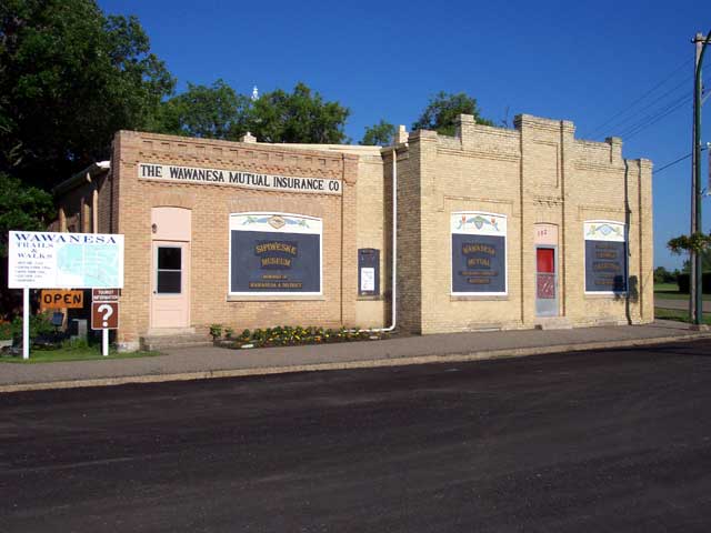 The name of this museum in Wawanesa, in the Municipality of Oakland-Wawanesa, is pronounced “Sip-i-wisk-ee,” an Aboriginal word that was the original town name, before local clerics argued—incorrectly—that it referred to consumption of alcohol. The collection is subdivided into expertly arranged vignettes portraying pioneer life in the Wawanesa area. Some of the displays include notable residents of the areas, Nellie McClung, the Criddle/Vane family, and a large room displaying the history of the Wawanesa Mutual Insurance Company from its humble roots to its present position as one of the largest Canadian-owned insurance companies. The building is a municipally designated historic site (1991) and a provincially designated historic site.