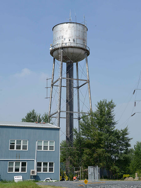 This water tower in Snow Lake, part of the original Nor-Acme Mine infrastructure, provided water to the mine, mill, and entire townsite. It was retired several years ago and is unused.