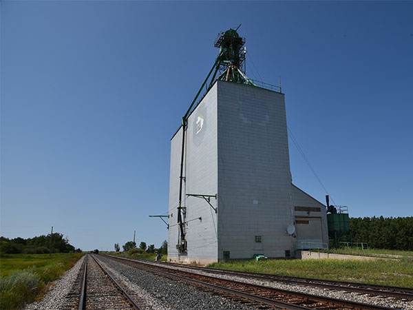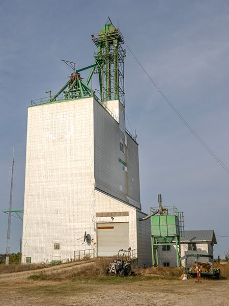 Former Manitoba Pool grain elevator at Solsgirth (September 2024)